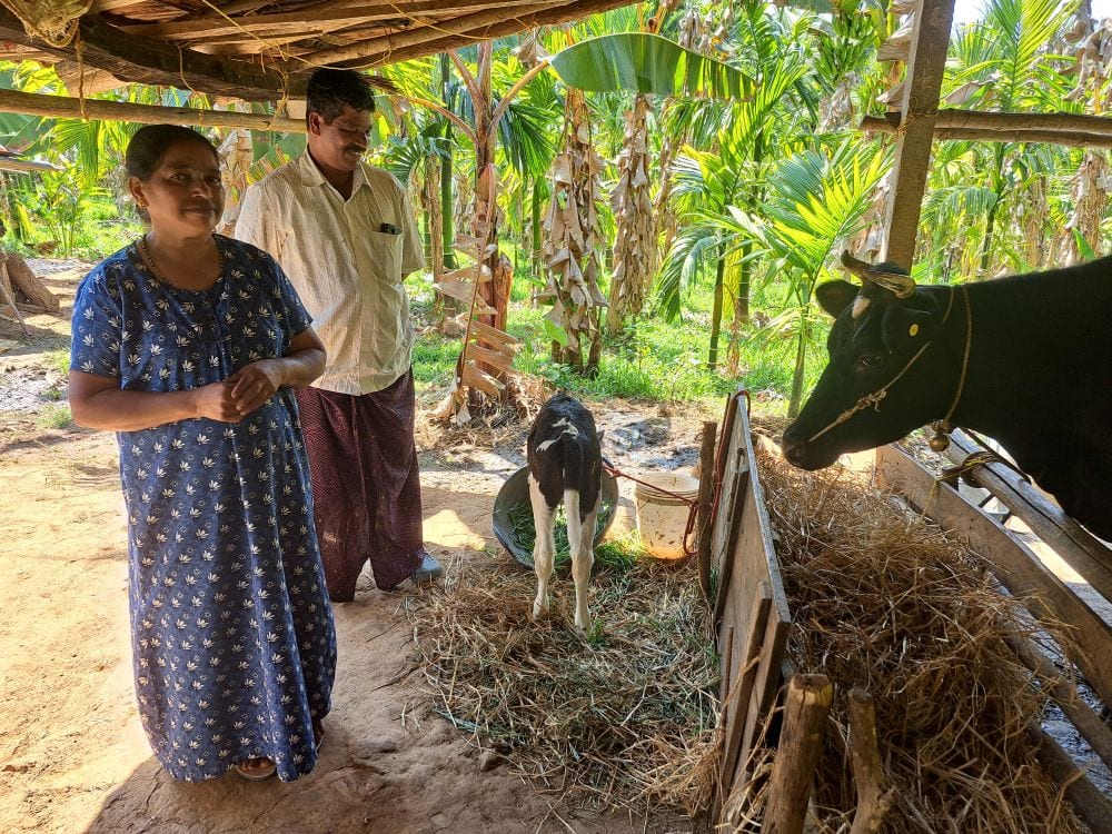 REISVERSLAG – Samen met vrouwen uit de zelfhulpgroepen vieren we Wereldvrouwendag. Vol trots laten ze een eenvoudige staalplaten schuur zien, waar ze in het dorpje bijeenkomsten kunnen houden. We bezoeken mw. Prabha en mw. Shruthi, die een naaimachine hebben gekregen, zodat ze thuis kunnen werken en met hun inkomen het gezin kunnen onderhouden. De familie Siji kreeg van ons een koe, die binnenkort gaat bevallen van een tweede kalf. Zij telen rubber en aracannoot. Zo probeert dit gezin genoeg te verdienen om de studie van hun twee dochters te betalen.